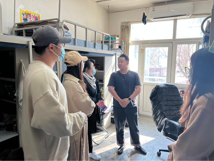 4月1日,学院党委副书记张倩及研究生辅导员鲁莹、马珂、钱思共同走访阜成路校区研究生宿舍看望在校研究生;学院老师一行人细致询问了研究生们在留校期间是否有困难,了解大家的学习安排以及住宿、用餐等生活情况,提醒同学们在常态化疫情防控期间做好自我防护,要规律作息、加强锻炼,提高身体免疫力;特意叮嘱毕业班的同学们要合理安排好时间,把握好应届生身份,将毕业论文与求职就业平衡处理。