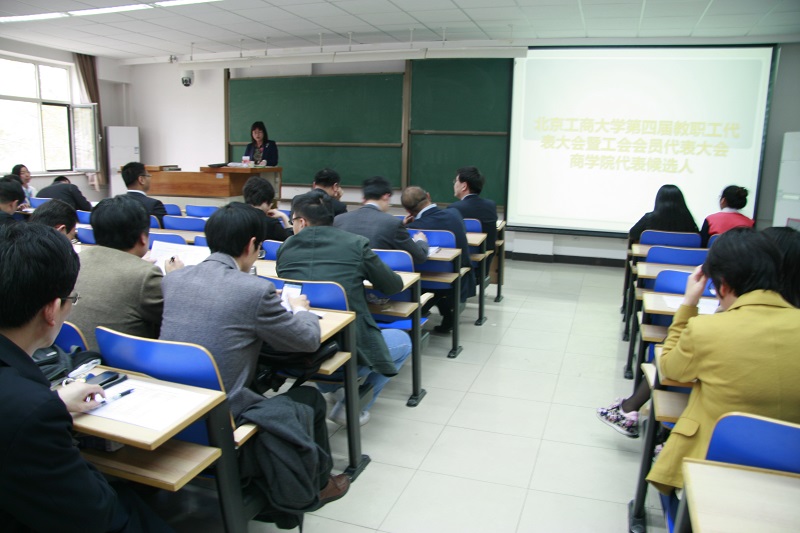 在西校区教一楼206召开双代会代表选举大会,与会教师达100人。会议由学院党委书记欧阳爱平主持。