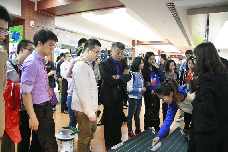 同学们在汉能集团高级战略总监王会东、管理人员朱彬、高倩的带领下参观了汉能集团的展厅,了解了汉能集团的发展历程、薄膜太阳能技术发展和汉能移动能源战略等情况,饶有兴致地参观了各种移动能源产品、汉能太阳能全动力汽车等,并详细询问不同产品的性能、价格以及企业管理、色控等问题。