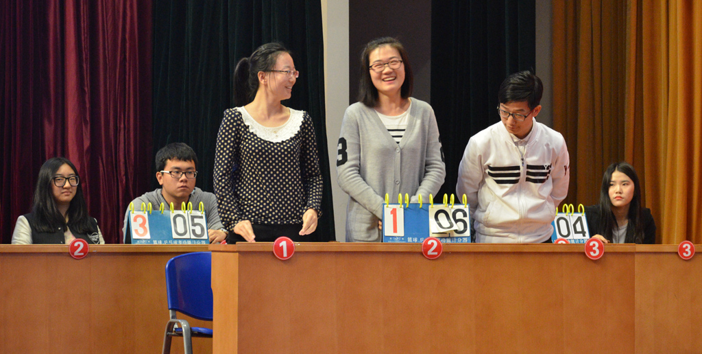 每学院派出两队参赛选手,每队三人。竞赛由预赛和决赛组成,预赛分为必答题、选答题和风险题三个环节;决赛由车轮战、抢答题、一题两答三个环节构成。经过预赛的精彩角逐,色控 二队和食品学院一队进入决赛。场上气氛紧张但不乏活跃,选手答题踊跃,准确率高,观众积极互动,将比赛推向高潮。食品学院一队的一号同学在两位队友均被淘汰的情况下,仍能以一己之力,力揽狂澜,但仍不幸在此环节惜败。