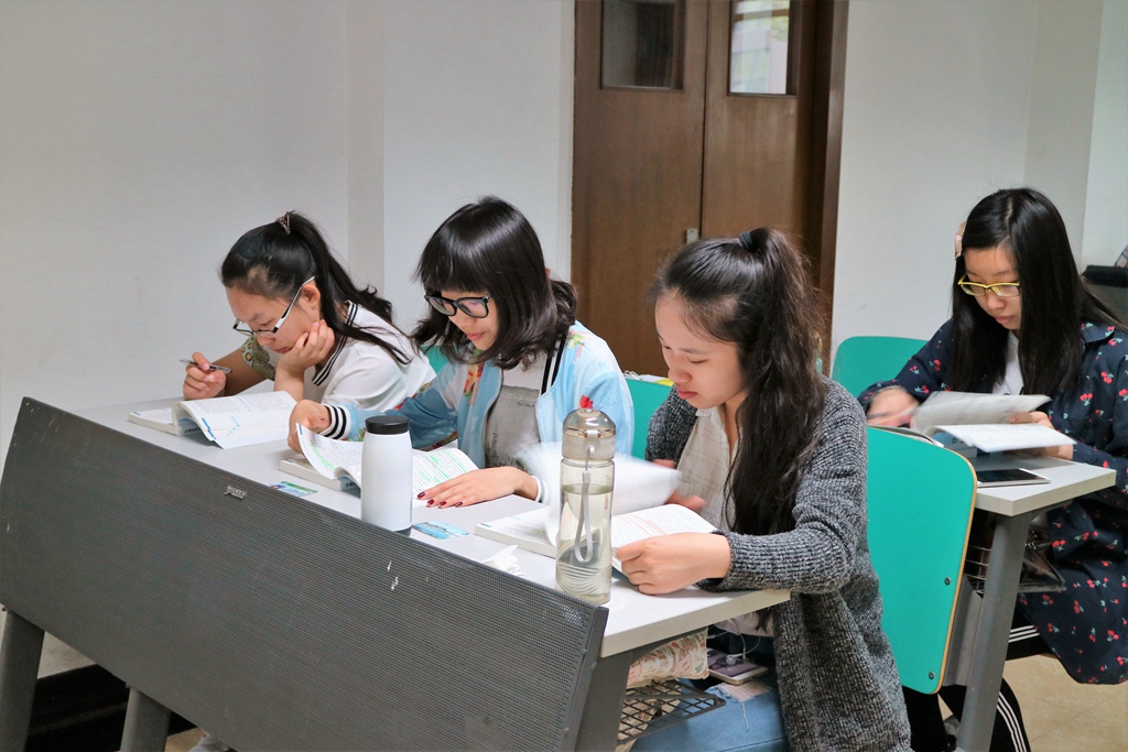 各班以多种多样的形式积极参与到晨读活动中来。随着四六级考试的临近,英语学习成为各班组织晨读活动的重中之重。伴随着朗朗的读书声、笔尖的摩挲声,教室里充盈着浓厚的学习氛围。