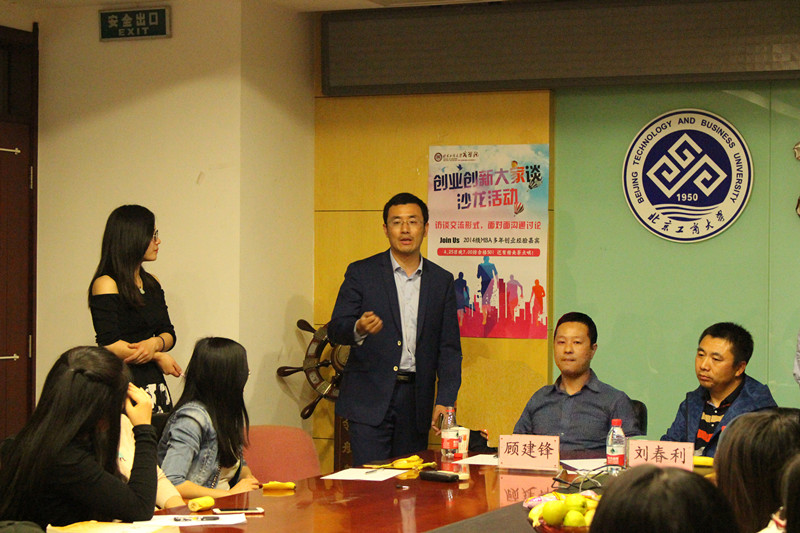 此次沙龙采用面对面访谈交流的形式,由主持人提出问题,三位嘉宾依次回答,期间与在场同学互动交流,深度沟通。“是什么让你走上了创业之路?”“什么样的性格特征的同学适合创业?”“如何在工作学习中发现创新点?”“在创业的过程中给你留下的印象最深刻的一件事情是什么?”……一个个生动的问题,拉近了创业者与同学们的距离。三位嘉宾时而幽默风趣地讲述自己当年的故事,时而言简意赅地总结经验教训,时而语重心长地给大家最诚恳的建议。顾建锋所在公司的产品已是电力行业知名品牌,其本人也在行业内小有名气,他告诉同学们自己成功的秘诀是随时随地替客户着想,与客户建立良好的关系,不断创新,用优质的产品和满意的服务,为客户创造更多价值,诚信和真心比盈利的愿望更重要。刘春利具有多年丰富创业经验,成功和失败都曾经历,他告诉大家创业本身是有风险的,其成功跟宏观社会环境与自身的性格素质等都有很大关系,在选择时应该慎重思考,急功近利的思想和迅速致富的思想都是创业中的大忌,只有把创业当成自己的事业,享受其过程才有成功的可能。贺志明指出一个好的创业者必须具备乐观的精神、抗压抗打击的素质和应对突发事件的能力,高的逆商和良好的心态是前进的动力;创业不仅仅是一种行为更是一种精神,如果将创业创新的精神运用在学习生活工作中,做事情就会事半功倍。三位嘉宾都是我校2014级MBA专业的在职研究生,当天北大、人大、北交等多所在京高校的MBA联合会主席也专程到场,人民大学MBA联合会主席王文超也是内蒙古草原天路文化发展有限公司创始人,他以亲身创业经历为大家讲述了创业中如何进行团队合作和开发资源、整合资源的技巧。