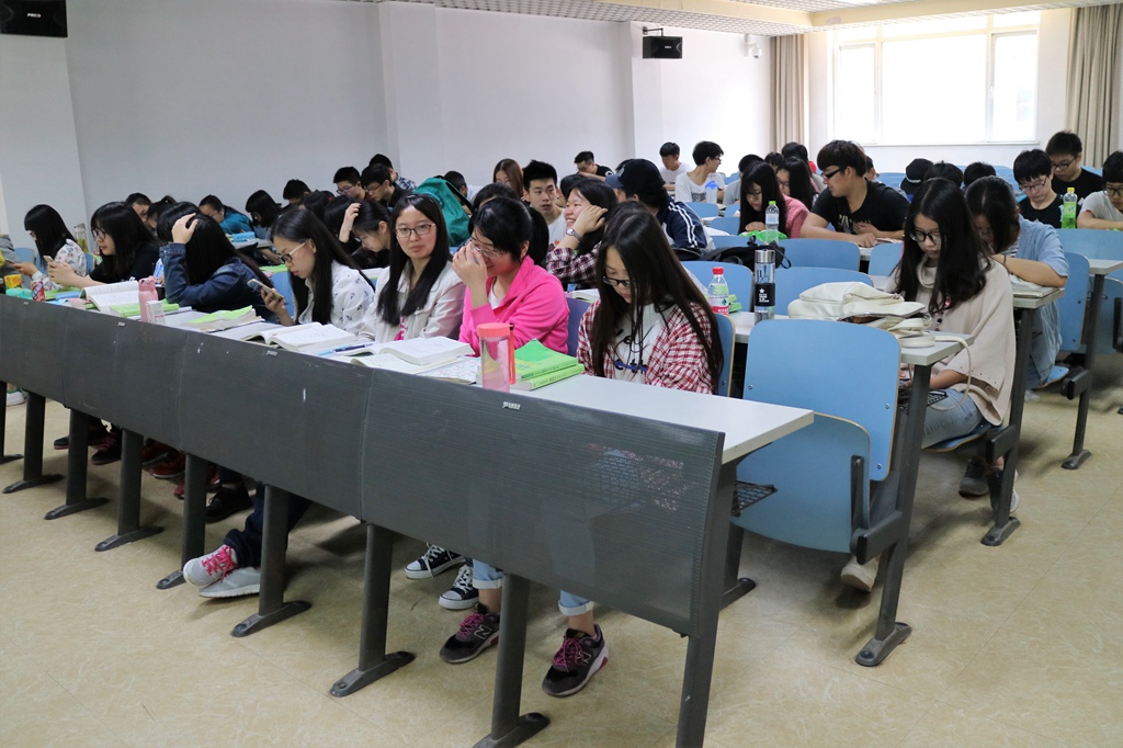 由于英语四六级考试临近,各班学委抓紧清晨的大好时光带领同学进行英语朗读、背诵,积极为应考四六级做准备。