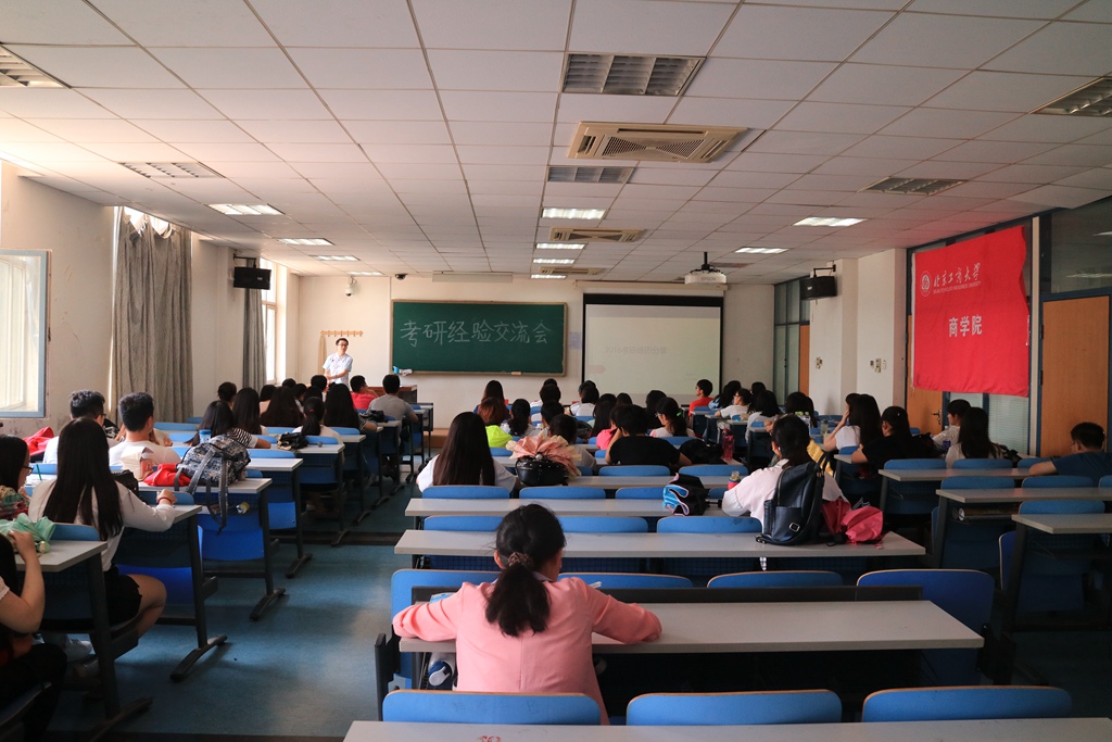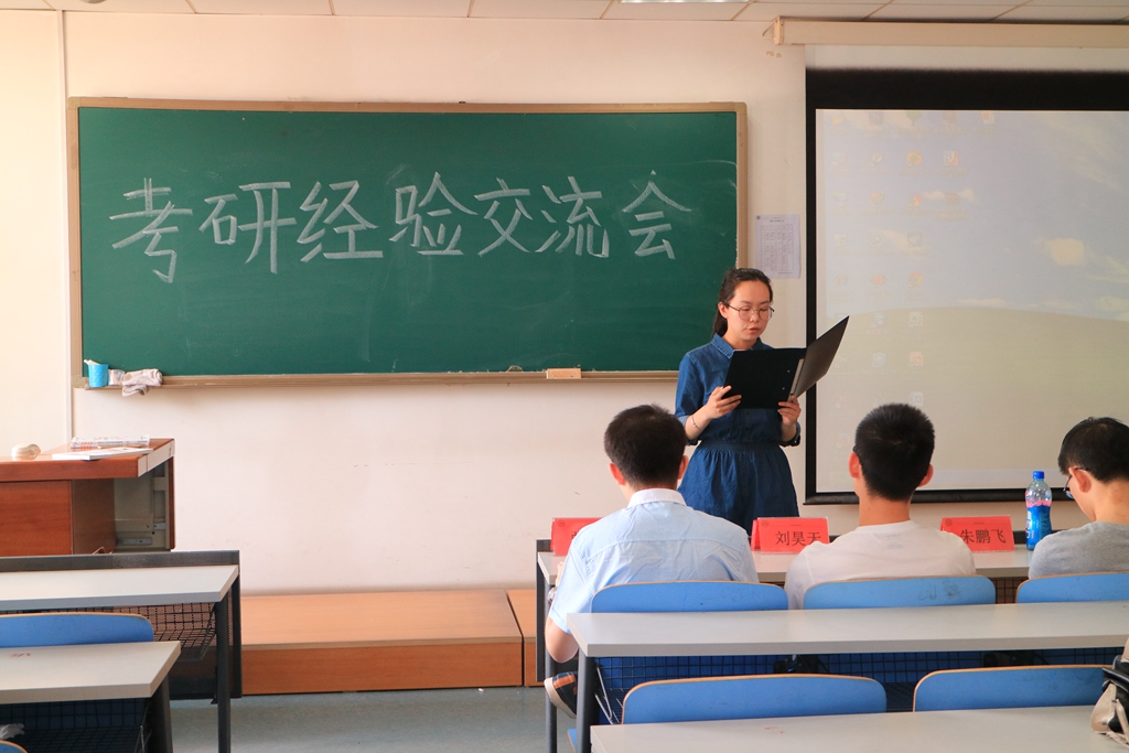 辅导员寇明雯老师组织举办、社团部协办的考研经验交流会于科研楼103室顺利开展。14级辅导员寇明雯老师出席了此次活动。此次交流会非常荣幸地请到了朋辈讲师张梦飞、刘昊天、朱鹏飞,他们分别考入了中国财政科学研究院、色控