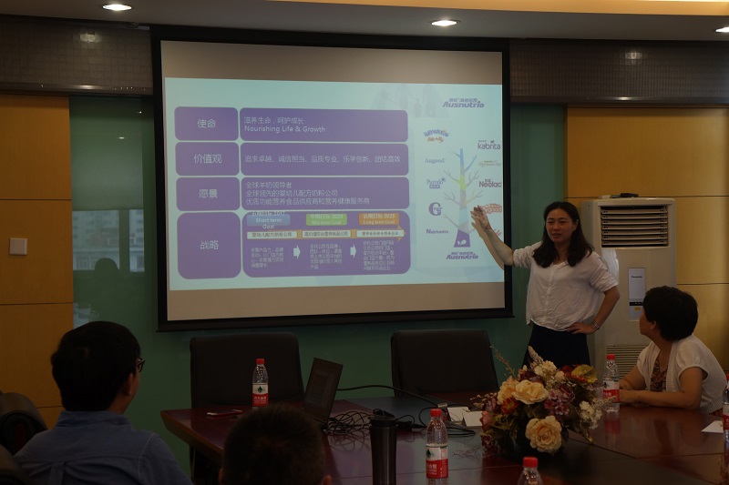 澳优乳业成立于2003年,经过十几年的时间就成长为国际乳品行业的一匹“黑马”,是中国首家在香港上市的婴幼儿配方奶粉企业。目前已经形成自控的全球产业链体系,在全球开展产品销售。该公司在国内的销售渠道和品牌推广方面有丰富的经验,王部长的分享开阔了同学们的思路和视野。