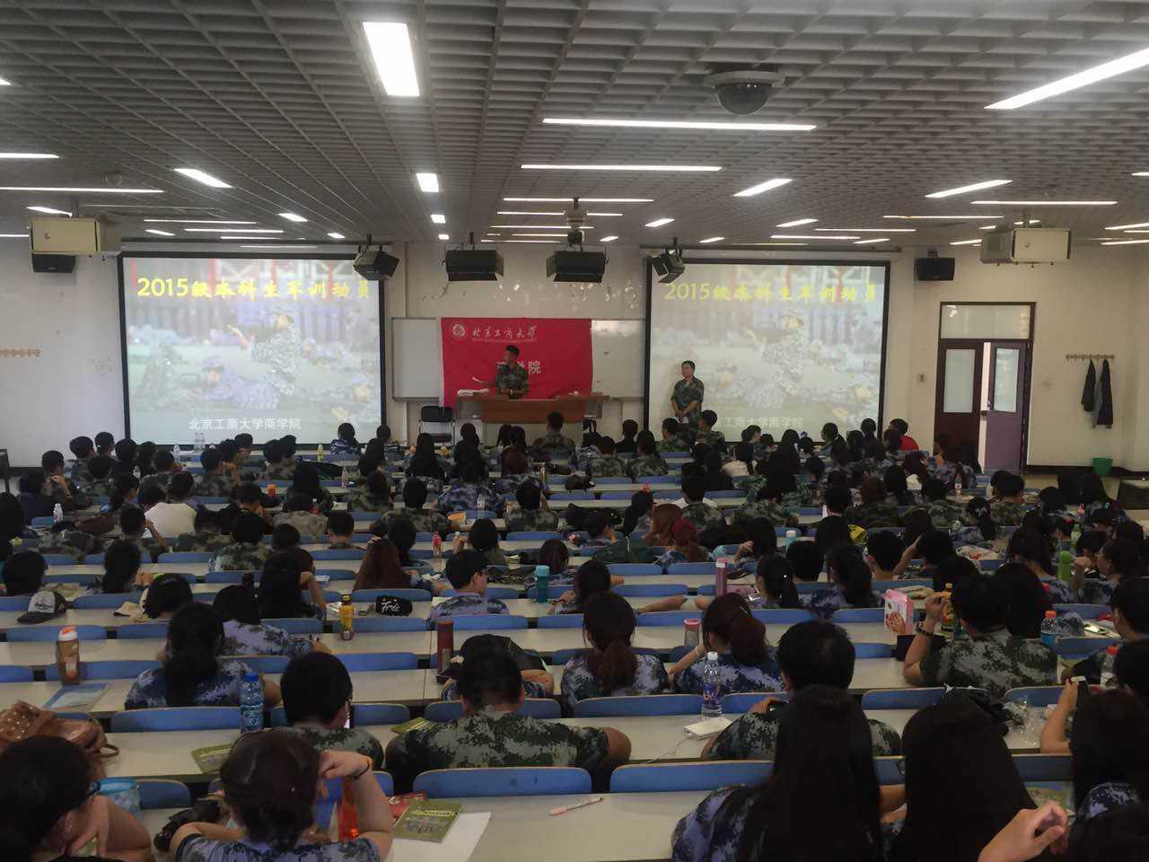 于良乡校区文三楼301室举行2015级本科生军训动员大会。本次大会由一营二连指导员郭建荣老师主持。色控