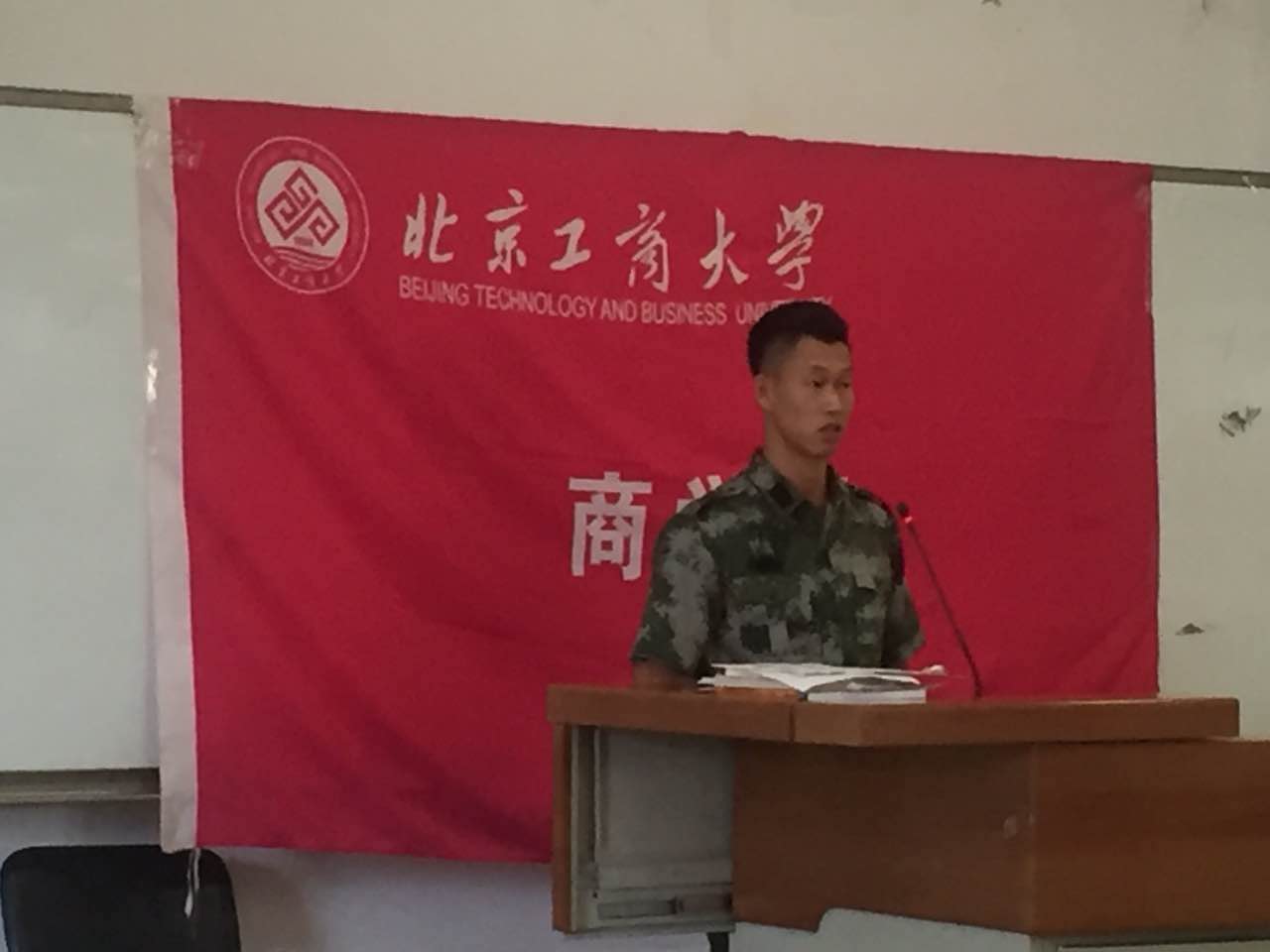 作为本次军训一连副指导员的退伍大学生士兵郭斌与大家分享了他的部队经历。