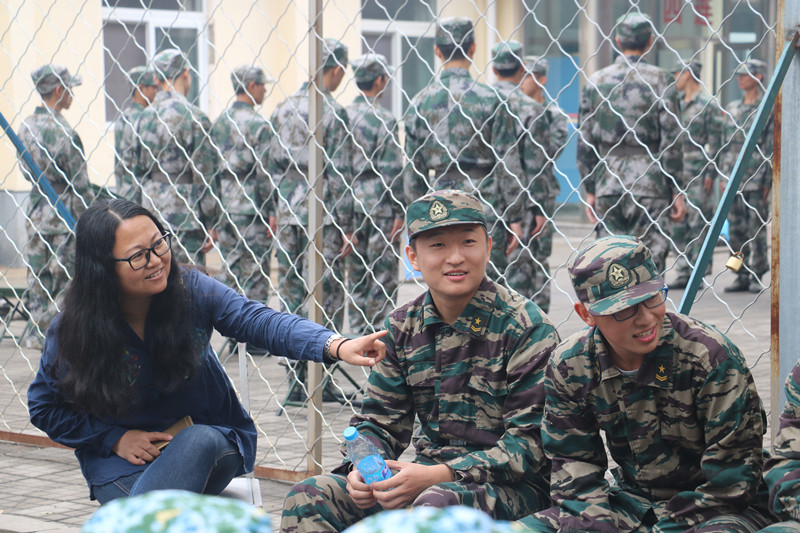 随后各班班主任与同学们分别围坐,召开新学期第二次班会。班主任们热切询问大家的身体状况和生活需求,并合影留恋,记录下军营中的美好瞬间,有些班主任贴心地还为班级同学带来了零食、无微不至的关心让同学们感受到家的温暖。部分班主任因有课未到,党委副书记樊江涛和工商系主任曹正进组织班主任没来的班级召开集体班会,殷切的关心和谆谆教诲让同学们感受到了学院的关心和温暖。老师们的到来是对军训的新生们最大的安慰,大家欢呼鼓掌,灿烂的笑容,刻苦的训练是对老师们最好的回馈。