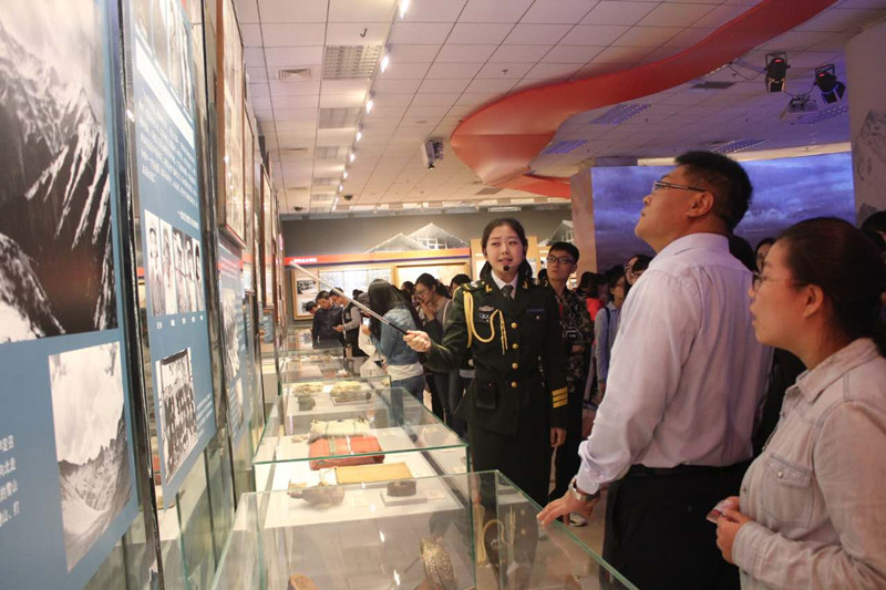 师生“重踏长征之路”的热情。来到军博后,同学们忙感叹军博那厚重的历史气息和人文积淀,一路上伴随着讲解员生动的解说,同学们与老师们都全神贯注的认真学习着长征英雄事迹和长征精神。面对深刻的文字、真实的照片、确凿的文物,八十几年前红军“爬雪山、过雪地、挖草根、吃树皮,四渡赤水、血战湘江、巧渡金沙江、强渡大渡河、翻越夹金山。。。”的一幕幕景象仿佛就在眼前重演。军事博物馆内一系列与长征有关的内容,都让同学们切身体会到了当年中华儿女“青山依旧在,不见儿郎归”的艰苦岁月,感受到中国共产党“红军不怕远征难,万水千山只等闲”的壮丽史诗,领悟到老一辈先烈“为有牺牲多壮志,敢叫日月换新天”的伟大精神。聆听历史回响,思考中国奇迹。