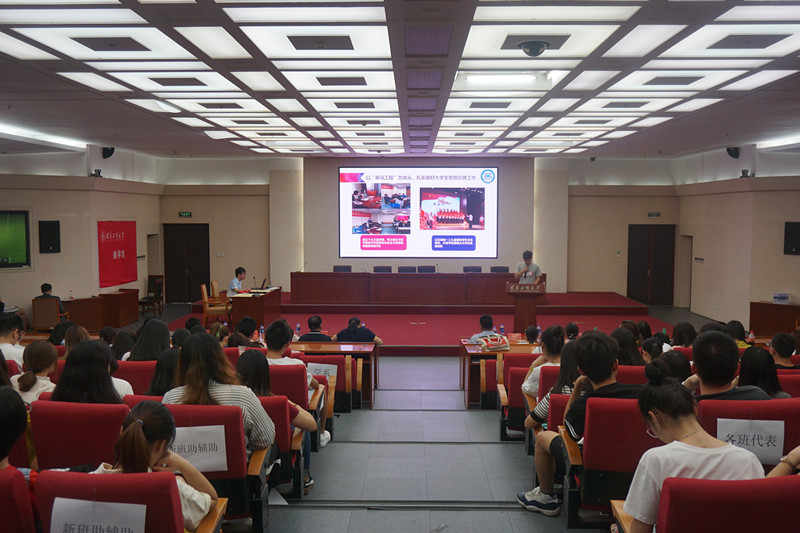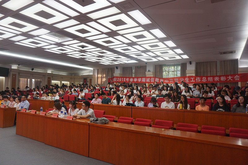 为迎接即将到来的期末考试,并总结各方面学生工作,不断完善提高共青团、学生会、青志协的工作水平,激励色控 全体学生积极奋进勇往直前。色控 于6月20日下午在文实模拟法庭召开了2018年春季学期诚信教育暨学生工作总结表彰大会。学院党委副书记樊江涛、团委书记李艳春、常务副书记李璐和郭建荣、李雨晴两位辅导员,与学生组织系统主要干部、各班主要负责人近300人一起参加了大会。