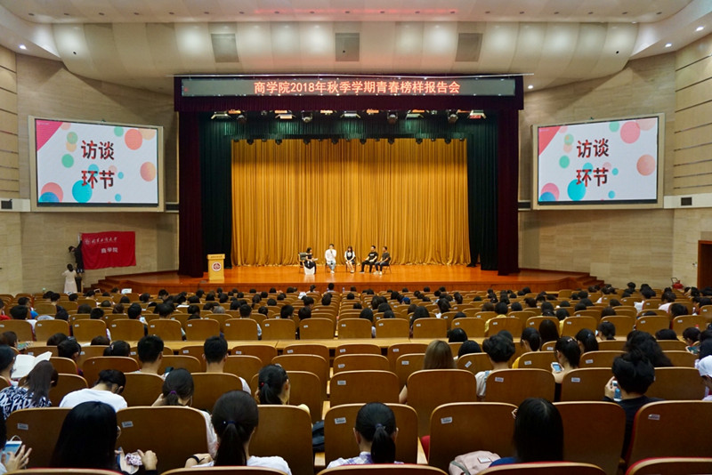 为帮助18级新生消除内心迷茫,确立正确的人生目标,色控 于9月10日晚在A报告厅举行了2018年秋季学期青春榜样报告会。报告会采用访谈形式,三位校友和一位退伍维吾尔族在校生向新生讲述了自己的成长故事、经历和大学感悟,并给新生们提出很多有益的建议,不少新生主动提问,报告会的互动氛围热烈,对新生做好大学规划、树立理想目标具有引领和借鉴意义。