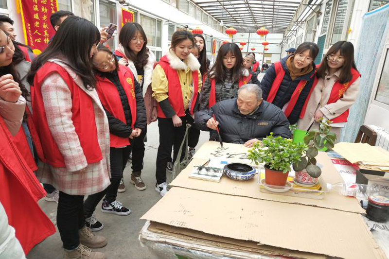 近70名志愿者们分别前往良乡的阳光邑上社区居委会与房山区拱辰街道伟业嘉园参与雷锋志愿活动。初春的寒冷挡不住学生的热情,同学们积极的参与,写下了一句又一句的雷锋名言,画出了一幅又一幅寓意深厚的画作;观看电影《离开雷锋的日子》的同时,同学们纷纷写下了自己的深刻感受;反复吟唱的“学习雷锋好榜样,忠于革命忠于党,爱憎分明不忘本”也使雷锋精神更入人心。团支部还创造性的通过PPT讲解和相关问题抢答的方式来增加同学们对雷锋精神的领悟。
