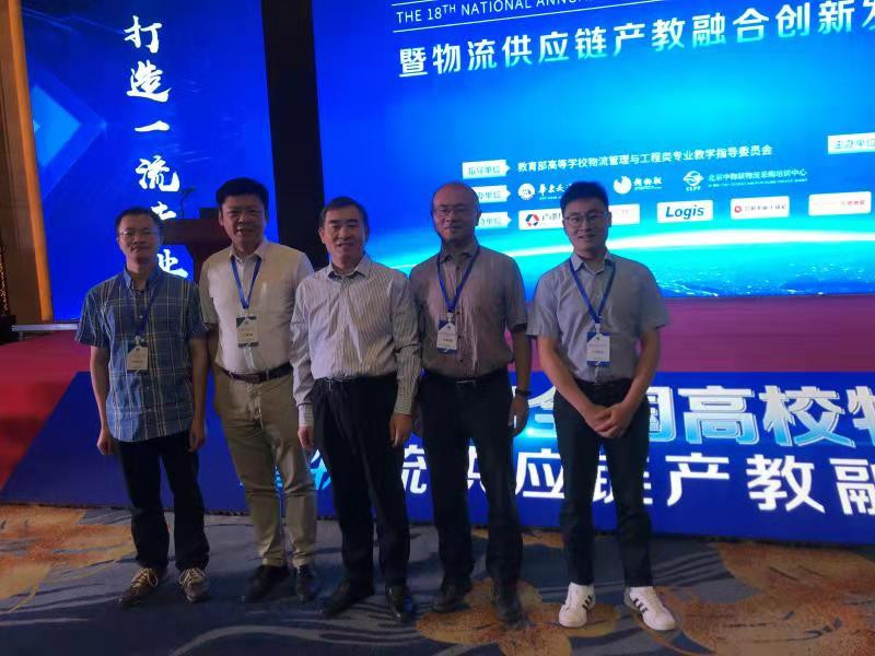物流管理系学科带头人杨浩雄教授,科学技术处副处长、物流管理系张浩教授,物流管理系副系主任卢强老师,张汉坤老师代表色控