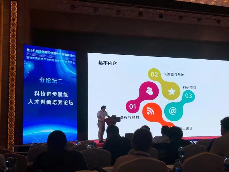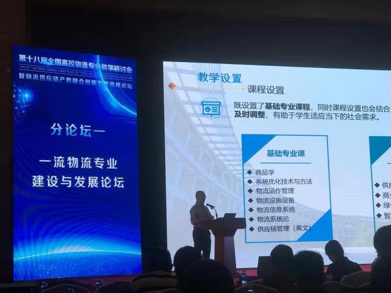 物流管理一流专业建设的实践与探索”主题演讲,与参会的专家学者分享了我校物流管理专业在专业综合改革、师资队伍和基层组织建设、专业保障体系举措、推进专业建设改革思路及举措等方面的经验。张浩教授作为演讲嘉宾在科技进步赋能人才创新培养论坛作了“物流管理专业科教融合的探索”主题演讲,与参会的专家学者分享了我校物流管理专业科研人才培养在教学、科研等方面的经验。