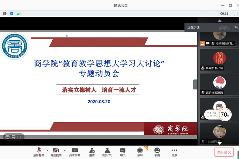 学院于8月17日和20日召开两场主题为“落实立德树人,培育一流人才 ”线上“教育教学思想大学习大讨论”专题动员会议,累计150余名师生参加动员会议。学院党委副书记张倩,全体辅导员、本研学生党支部书记、团学干部、各班骨干等参加此次会议。会议由团委书记李艳春主持。