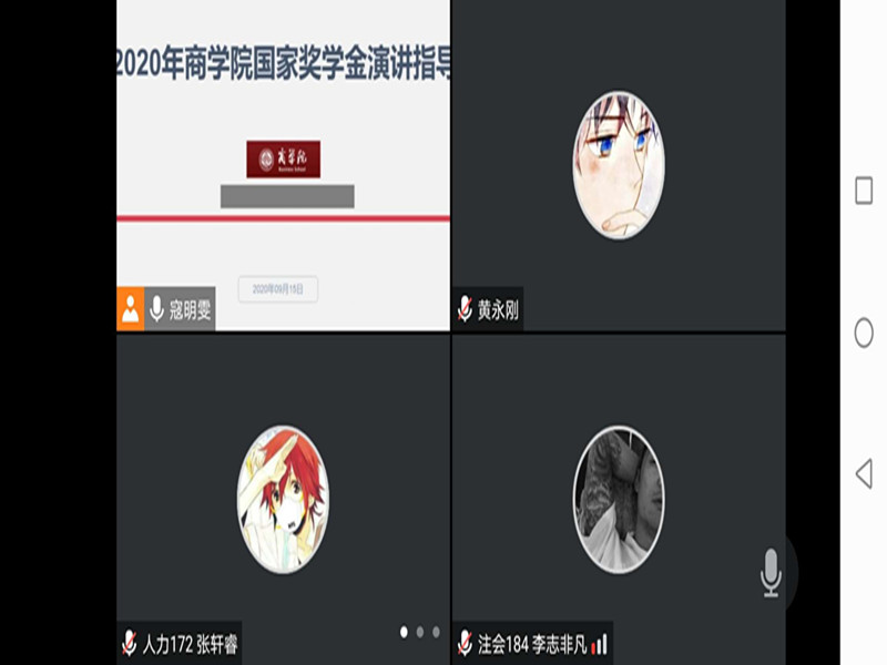 对推荐参评的四位同学精心组织了多次线上、线下的指导,多名辅导员老师耐心细致地为学生指导、推敲文字,并组织往届获得国家奖学金的邢佳媛、黄永刚做经验交流和分享。