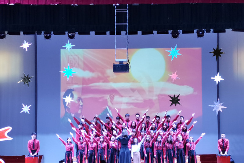 在良乡校区文体馆举办2019-2020学年表彰大会暨纪念“一二·九”运动85周年合唱比赛。