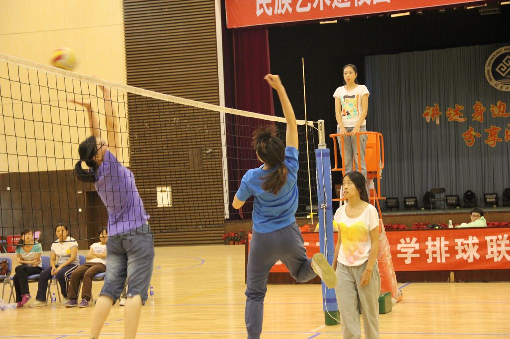 比赛在一声哨声中开始了。色控 与计算机与信息工程学院的观众们自发地为女排选手们呐喊助威,台下比赛激烈进行着,而观众席上也略显火药味。