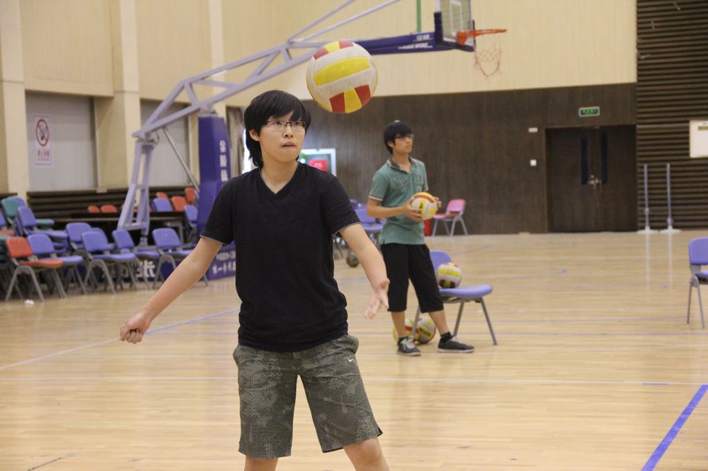 计算机与信息工程学院的同学丝毫不气馁,在大比分2:0 的劣势下依旧努力战斗着。观众席的观众的心也随之悬了起来。在重新调整选手后,计信学院的选手们似乎爆发了,一直领先。观众席上的商院观众们也似乎着了急,鼓声,呐喊声充满整个文体馆。终于在18:18 追平比分。两院的比分齐头并进。最终色控 以25:21 结束比赛。