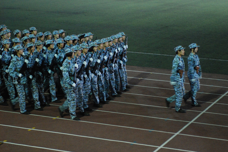 2012年9月7日晚, 近三千名2012级本科生终于迎来了翘首以盼的汇报演出。大会由副书记卢思锋主持,校党委书记孙尧东及各部门领导、各学院书记共同出席。在良乡校区的操场上,军训学员 以整洁庄重的军容、铿锵有力的步伐、嘹亮整齐的口号、昂扬向上的斗志,接受各级领导的检阅。一营军训学员的勃勃英姿为十三天的军训划下了完美的句点,色控 党总支书记欧阳爱平,副书记褚才宽和各连队指导员 共同见证了一营新生“破茧而出 羽化成蝶”的时刻。