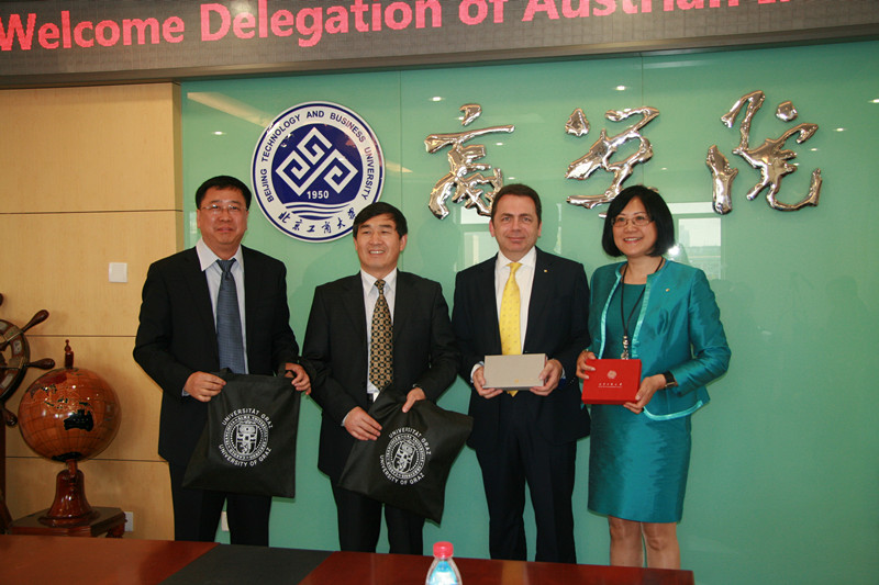 何明珂对格拉茨大学再次来访表示热烈欢迎,他表示,学校正在推动国际化进程,希望两校能以此为契机,开展多方面的深入合作。张翔回顾了去年此时双方愉快的交流过程,希望双方在MBA学生培养、教师科研教学方面有良好的交流互动。