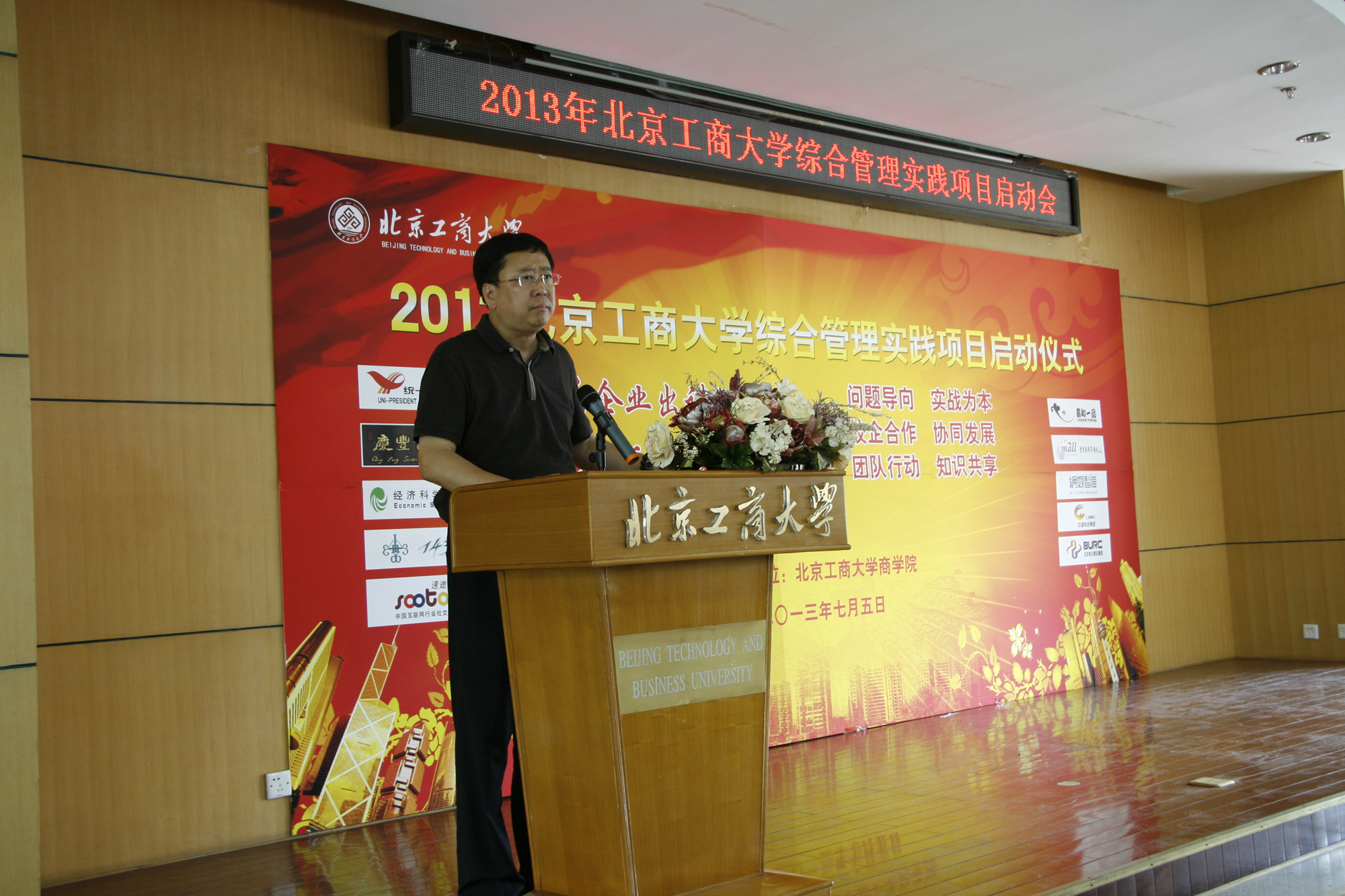 7月5日下午,第二届市场营销综合实践及MBA综合管理实践项目启动仪式在阜成路校区举行。金源新燕莎MALL、华天饮食庆丰包子铺、统一企业公司、网娱智信科技咨询(北京)有限公司、速途网、北京鄂尔多斯创展服装有限公司、经济科学出版社等企业的高层管理者及色控 副院长张翔教授、市场营销系教师、学生参加了此次活动。速途网等媒体参加了会议。启动仪式由市场营销系郭崇义副教授主持。