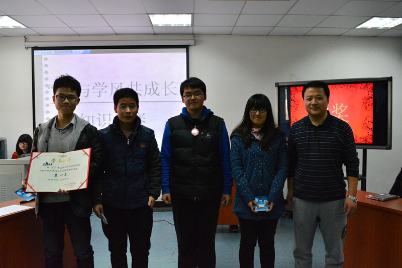 面向全体2013级15个班级举办了“我与学风共成长”主题知识竞赛。不同于以往的是,此次活动摒弃了以往相对比较枯燥的考试形式,采取了内容更加丰富的主题知识竞赛形式,活动将《学生手册》中涉及学生的权利与义务、学籍管理、日常管理、奖励与处分以及党团知识融入竞赛中,让同学们带着更加积极主动的心态将《学生手册》中的内容牢记于心。整个比赛以知识问答形式为主,过程经历了初赛、半决赛、总决赛三个阶段,每场比赛又分为团体合作、个人代表、自选难度等环节。同学们表示“这是上大学以来,第一次通过知识竞赛的方式来学习学生手册中内容,让自己完全沉浸在一种轻松和愉悦的气氛中来学习知识,不仅加深了对学生手册的学习,也通过它丰富了自己的学习生活。”采取主题知识竞赛的学习模式,将以往学生被动学习改变为主动学习,唤起同学们对学习方式的重新思考,同时也为良好学风的塑造注入活力。