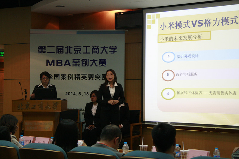 大赛本着“理论与实践相结合”以培养高素质、强能人、厚基础的教育理念而举办。共有八支队伍参加决赛,针对“小米与格力电器谁更有生命力”的案例,进行分析陈述,并随后进行一对一“pk”的互相提问。大家在比赛过程中使出浑身解数,场面非常激烈,特别是最后两支队伍,来自MBA12级在职班代表队和普研代表队,双方激烈的碰撞把本次案例大赛推向了高潮。一、二、三等奖及优胜等奖项各有归属;MBA13在职班的王柟和MPAcc13级的马奇巧获得最佳个人奖;MBA12在职班代表队将“最佳创意奖”收入囊中。