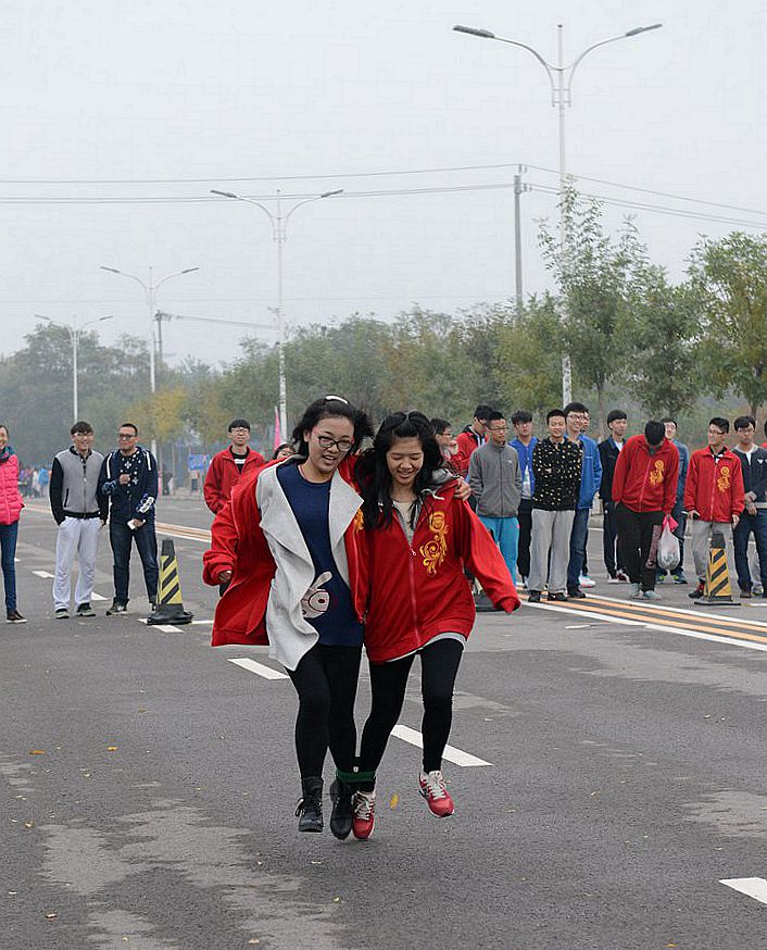 为加强班级凝聚力、增强“五早”活动趣味性、提高广大新生对“五早”活动的参与度,10月23日早7时10分,色控 的两人三足比赛于晨练场地举行。色控 党委副书记樊江涛、14级辅导员范文昕、15级辅导员李璐、丁璇老师亲自到场监督指导。