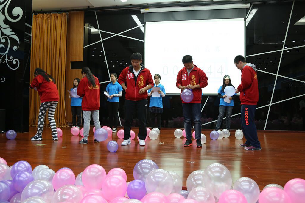 为弘扬大学生体育运动精神,丰富大学生的校园生活,增强学生的身体健康素质,10月28日晚7时,色控 各学院在学生活动中心多功能厅组织进行吹气球挑战赛。此次比赛非常荣幸地邀请到色控 团委副书记孙维佳老师、刘陈晨老师、王若冰老师和李昀澄老师担任嘉宾。