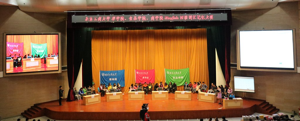 为激发2015级新生学习英语的兴趣,引导新生尽早投身英语四级考试的学习准备中,2015年11月11日晚间,色控 、食品学院和理学院在良乡校区学术报告厅联合举办了“iEnglish”英语四级词汇记忆大赛决赛。校党委副书记张德玉莅临现场观摩指导,与三院党委副书记、辅导员和500余名新生观看了比赛。
